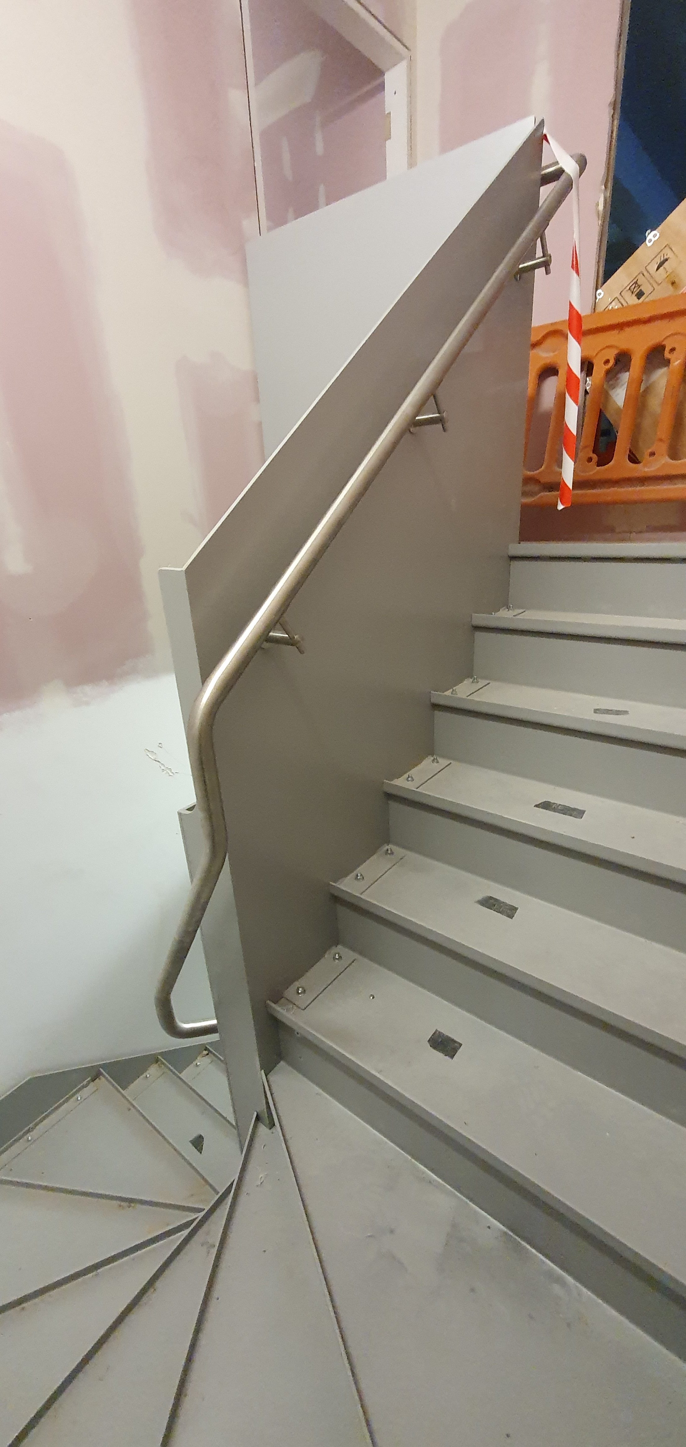 The area in which the stair was installed was very tight, so we trial erected the stair in our workshop. During the trial we discovered a major problem fitting the treads. Because the stair was destined for such a small space, had we not spotted the issue until we arrived on site in Westminster, we would not have been able to install it. As it was, we changed a few design details at headquarters. In fact, installation went very smoothly and ahead of programme. What do you think of the completed staircase?